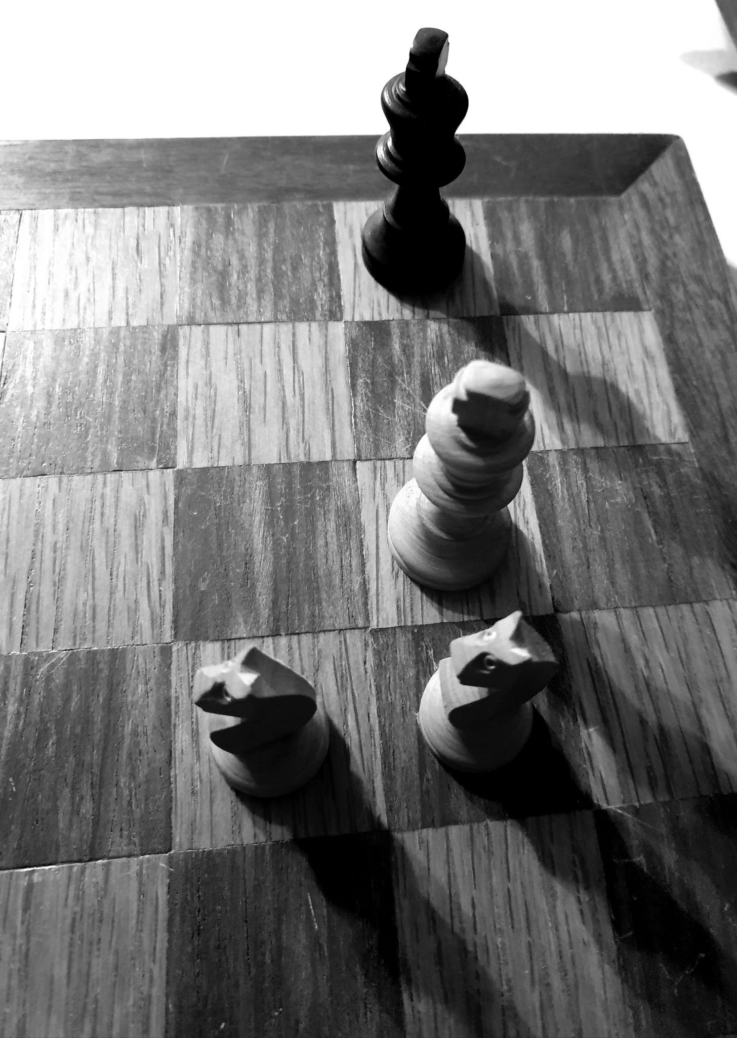 He examined the chess problem and set out the pieces. It was a tricky ending, involving a couple of knights. ‘White to play and mate in two moves.’ Winston looked up at the portrait of Big Brother. White always mates, he thought with a sort of cloudy mysticism. Always, without exception, it is so arranged. In no chess problem since the beginning of the world has black ever won. Did it not symbolize the eternal, unvarying triumph of Good over Evil? The huge face gazed back at him, full of calm power. White always mates.